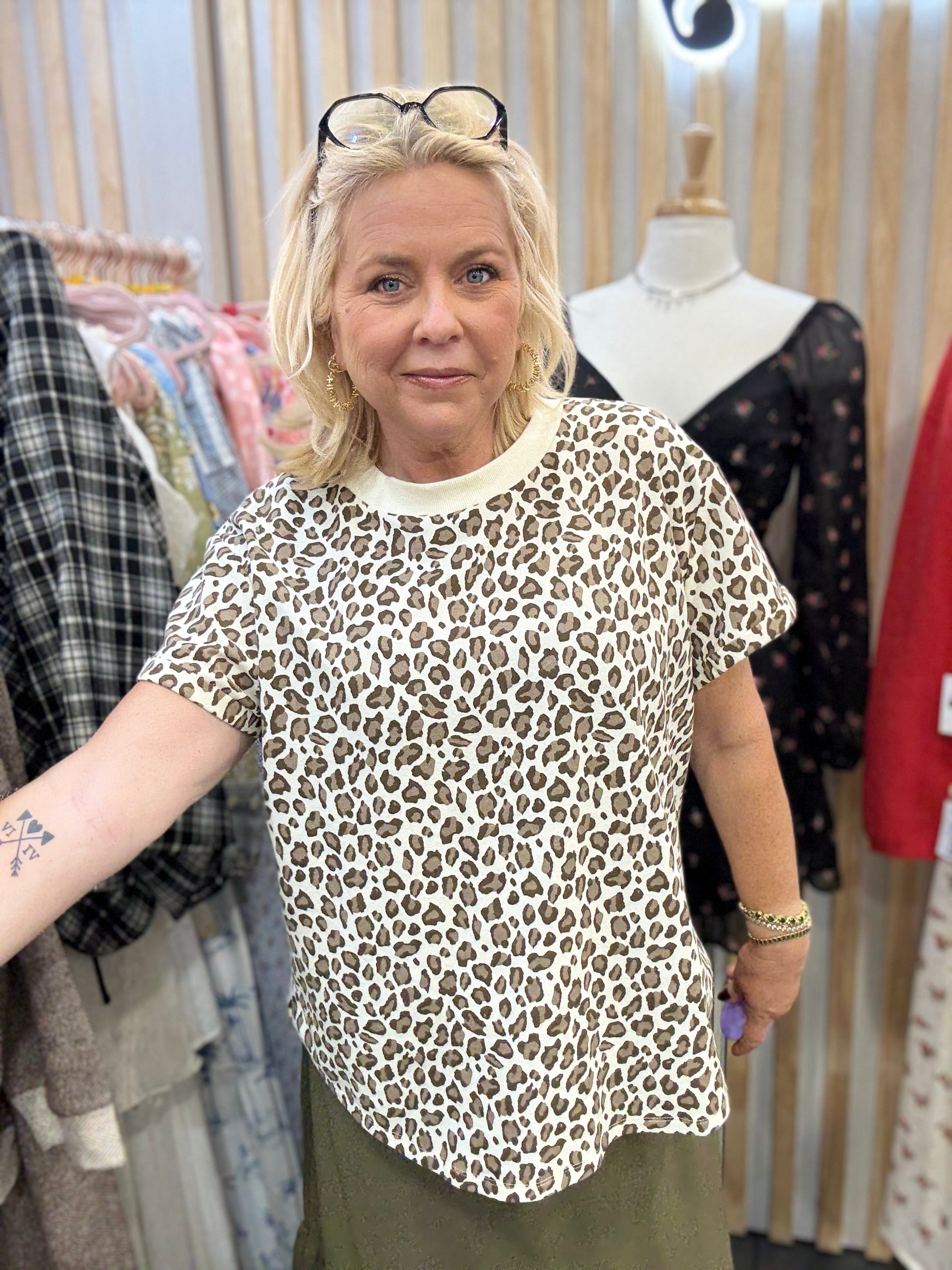 Introducing our fabulous leopard print top, perfect for adding a touch of wild style to your wardrobe! This chic piece features a playful leopard pattern on a soft, breathable fabric, ensuring comfort all day long. With its relaxed fit and trendy short sleeves, it pairs beautifully with skirts or jeans for a casual yet stylish look. Whether you're out with friends or enjoying a cozy day at home, this top is sure to make you feel confident and fabulous!