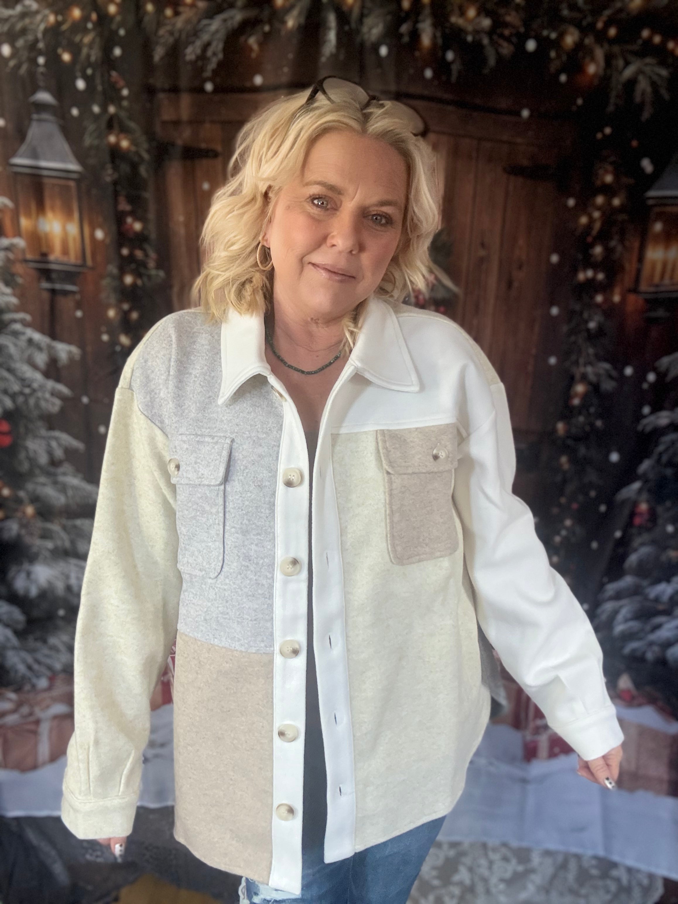 Introducing our chic Color Block Button-Up Jacket! This stylish piece features a delightful blend of soft beige and gray tones, perfect for adding a touch of elegance to any outfit. With its classic button-up design and two front pockets, it combines functionality with fashion. The relaxed fit ensures comfort, making it ideal for both casual outings and cozy gatherings. Elevate your wardrobe with this versatile jacket that radiates effortless charm!