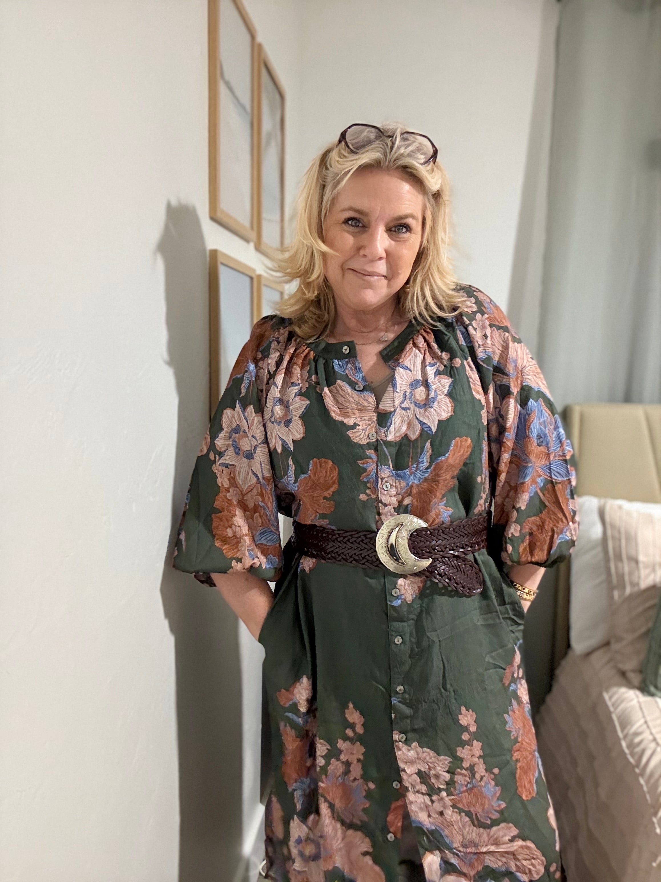 Embrace the beauty of nature with our stunning green dress adorned with delicate floral patterns. This elegant piece is designed to enhance your silhouette while providing comfort and style for any occasion. The vibrant green hue, complemented by the charming floral accents, makes it a perfect choice for spring outings, garden parties, or casual gatherings. Crafted from high-quality materials, this dress ensures a flattering fit and effortless movement, allowing you to express your unique style with confidence. Elevate your wardrobe with this timeless addition that celebrates femininity and grace.