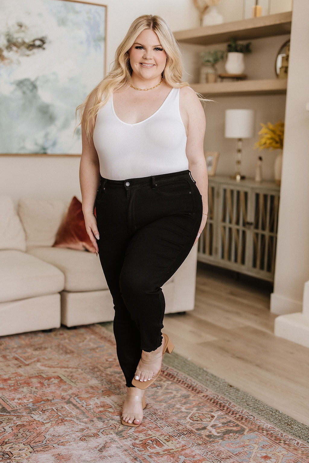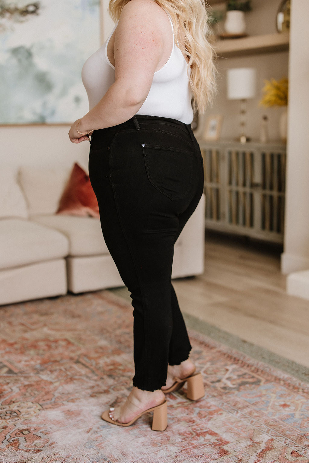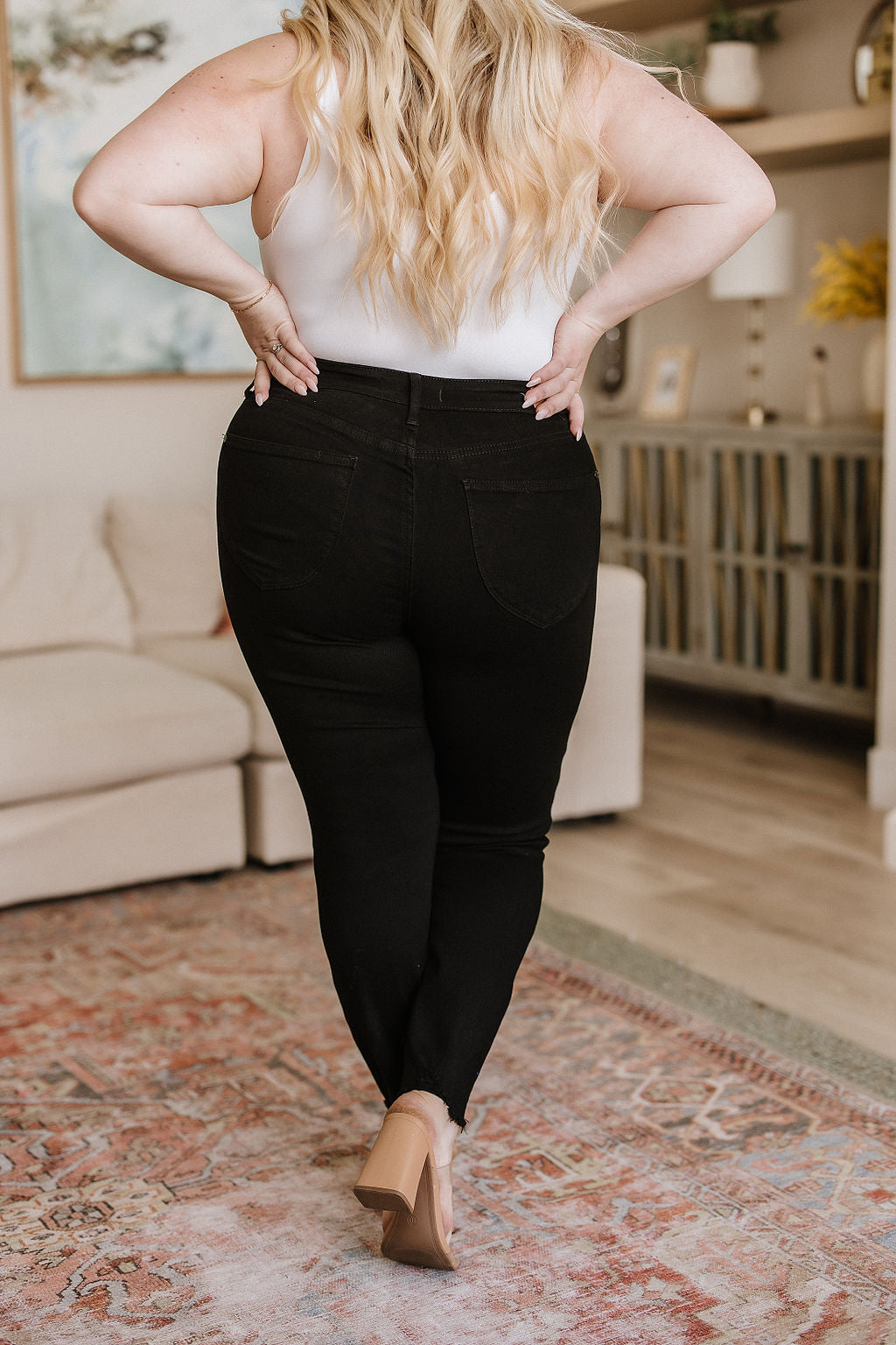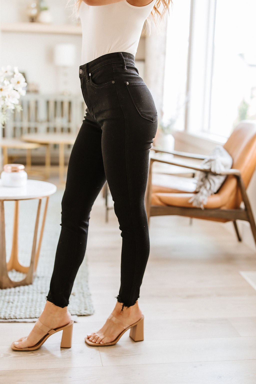 Be the envy of any room wearing our Ebony High Rise Control Top Skinny Jeans. Crafted with slimming tummy control tech, raw ankle hem, and featuring a classic black skinny jeans style, these jeans will give you the confidence to rock any look. Feel powerful and beautiful!