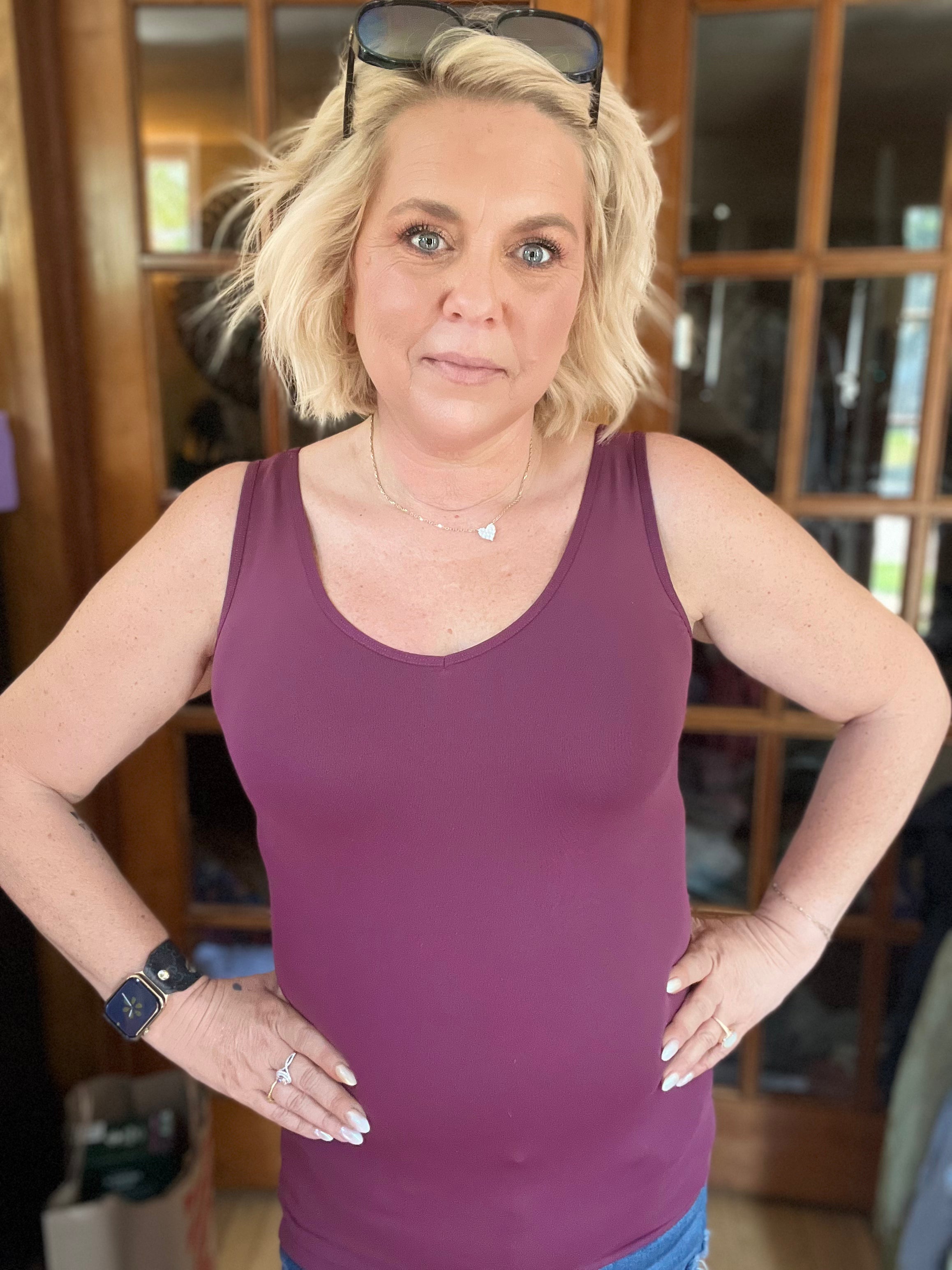 This seamless tank makes styling effortless. The v- neck elongates the neck making it ultra flattering. The seamless, fitted silhouette is made from a buttery soft fabric that makes it comfortable for all day wear.