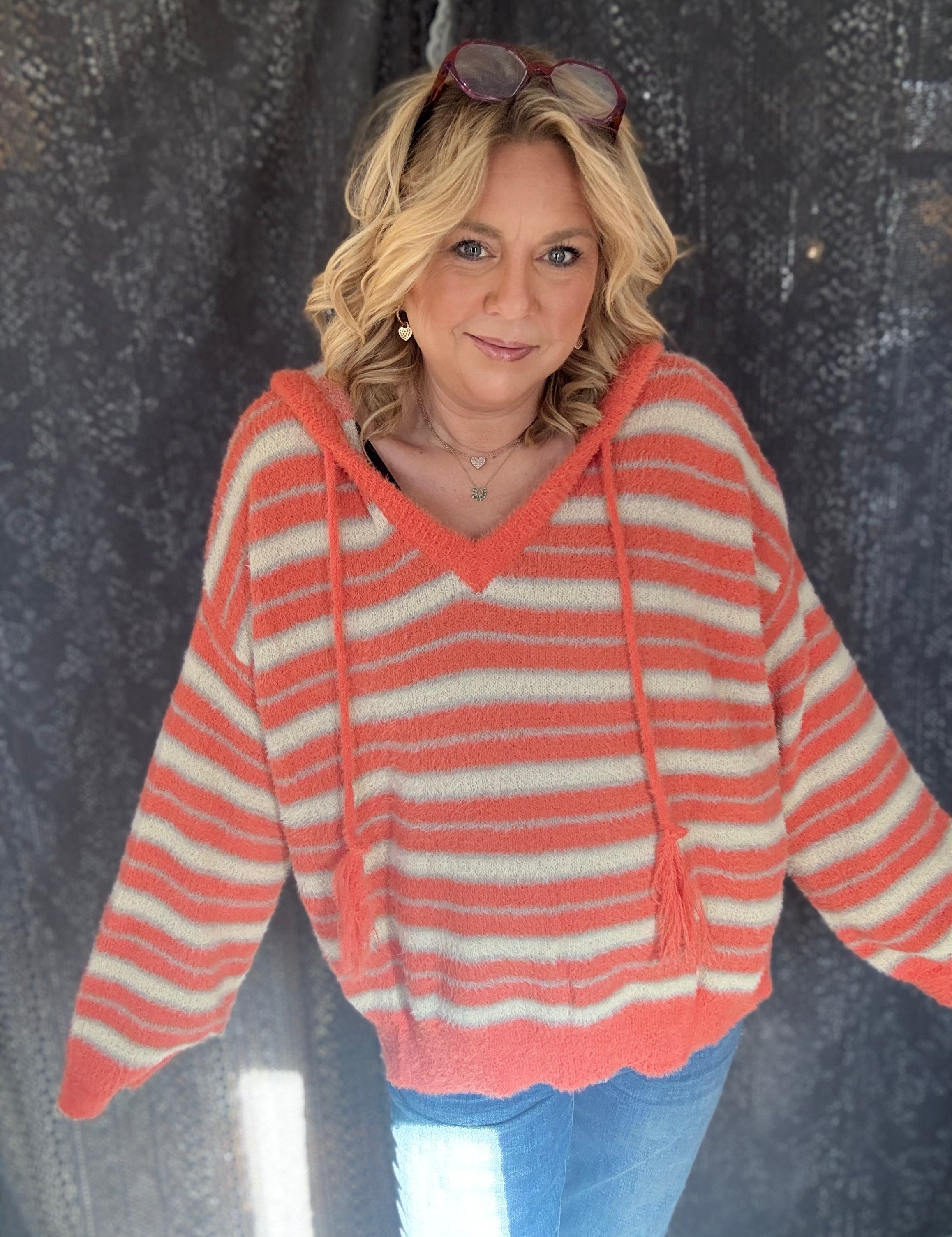 Sunsets and Stripes Hooded Sweater - Orange