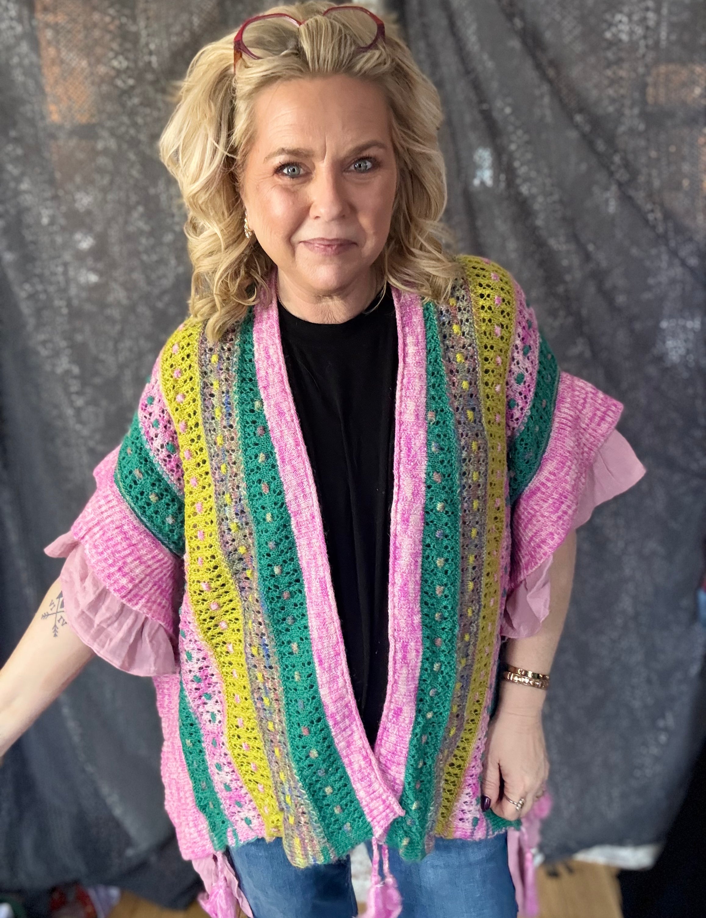 Spring Forward Open Cardi - Pink Multi