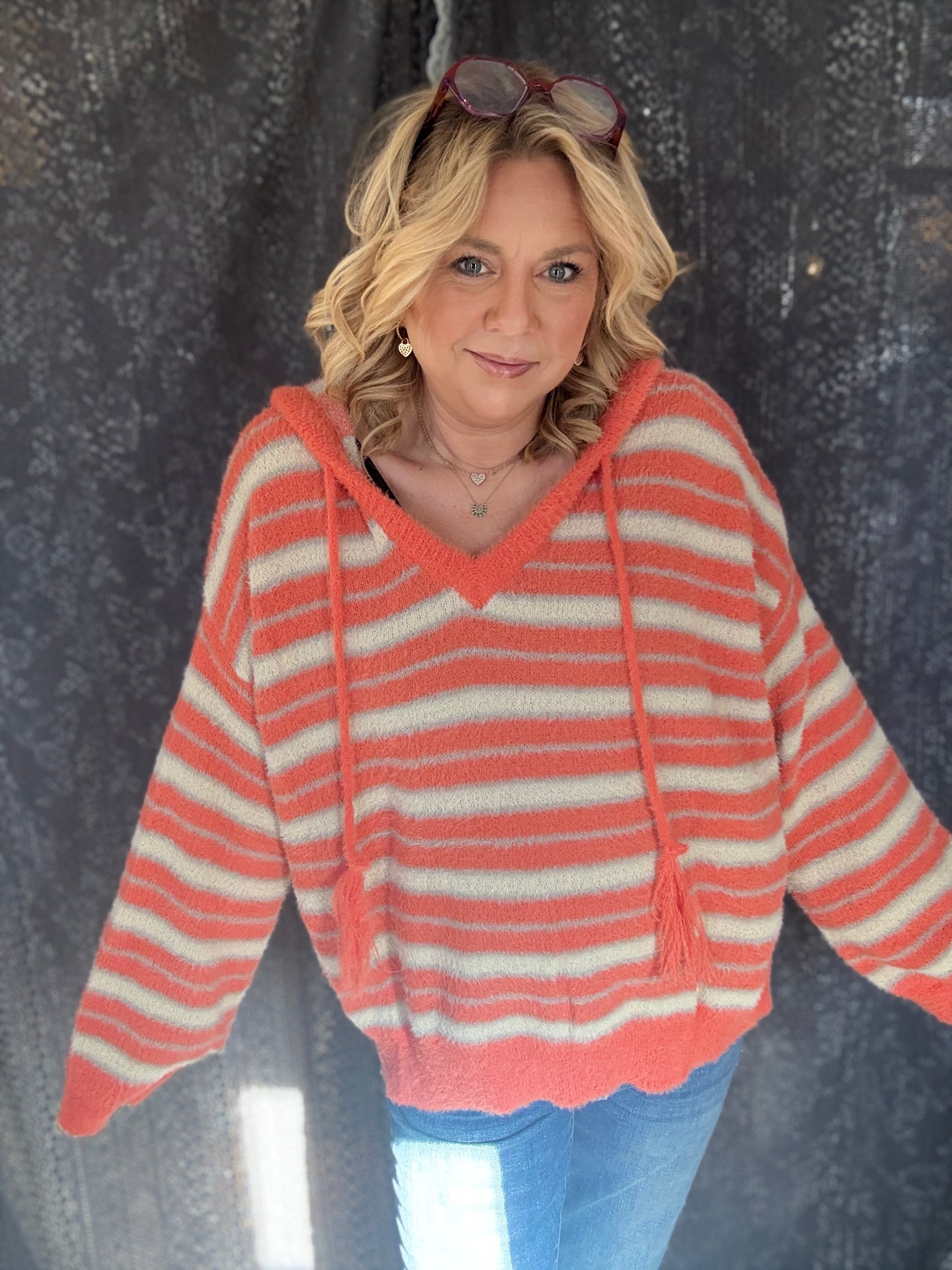 Elevate your wardrobe with our stylish orange and white striped sweater, designed for both comfort and versatility. Crafted from a soft, breathable fabric, this sweater offers a cozy fit perfect for layering or wearing on its own. The vibrant stripes add a pop of color to any outfit, making it an ideal choice for casual outings or relaxed weekends. Embrace a chic yet effortless look with this must-have addition to your collection.