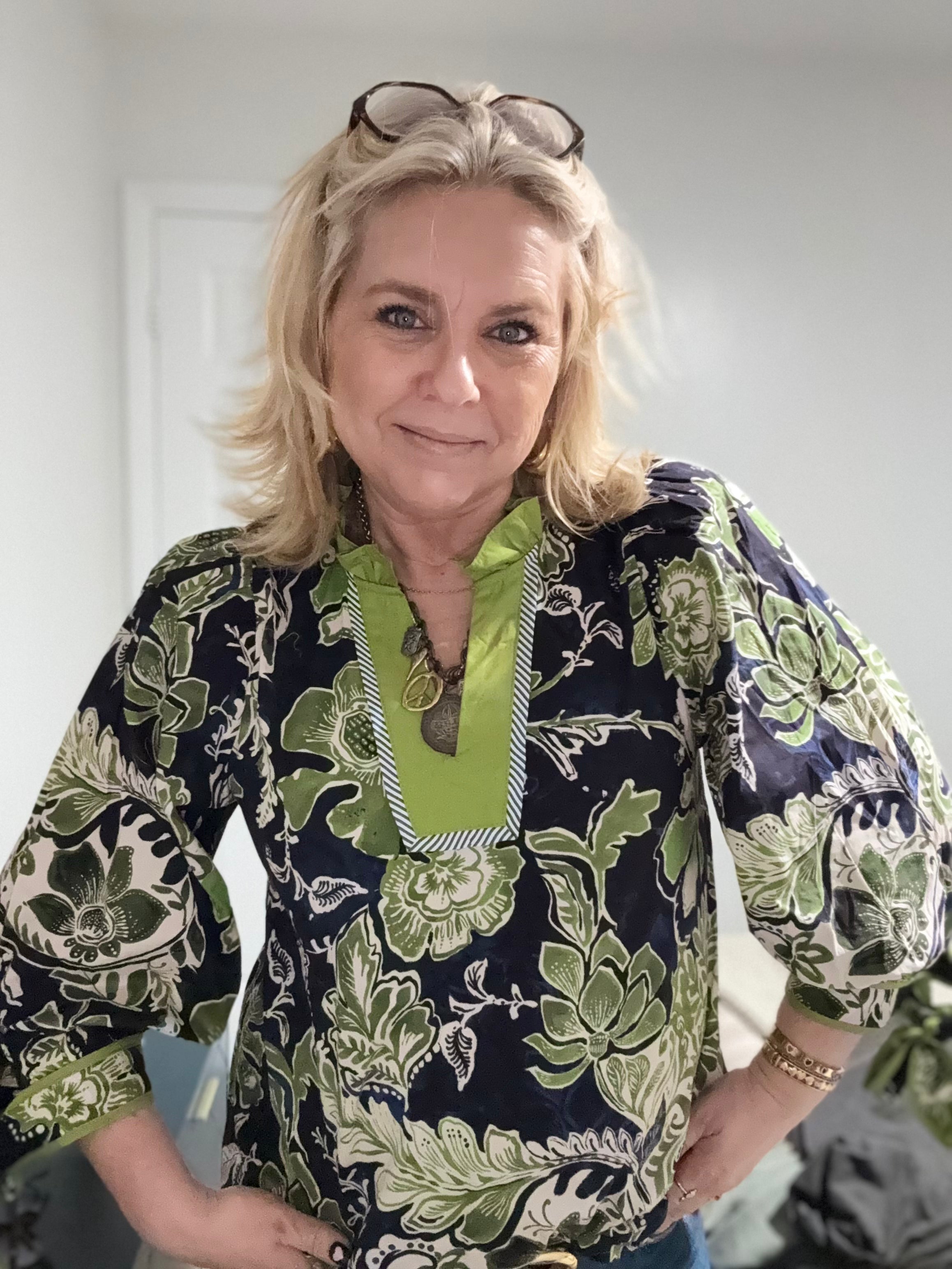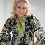 Elevate your wardrobe with this stunning green and navy blouse, a perfect blend of sophistication and style. Crafted from high-quality fabric, it offers a comfortable fit while ensuring you stand out in any setting. The striking color combination adds a touch of elegance, making it ideal for both casual outings and formal events. Pair it with your favorite jeans or a sleek skirt for a versatile look that transitions effortlessly from day to night. Don't miss the chance to enhance your collection with this chic essential.