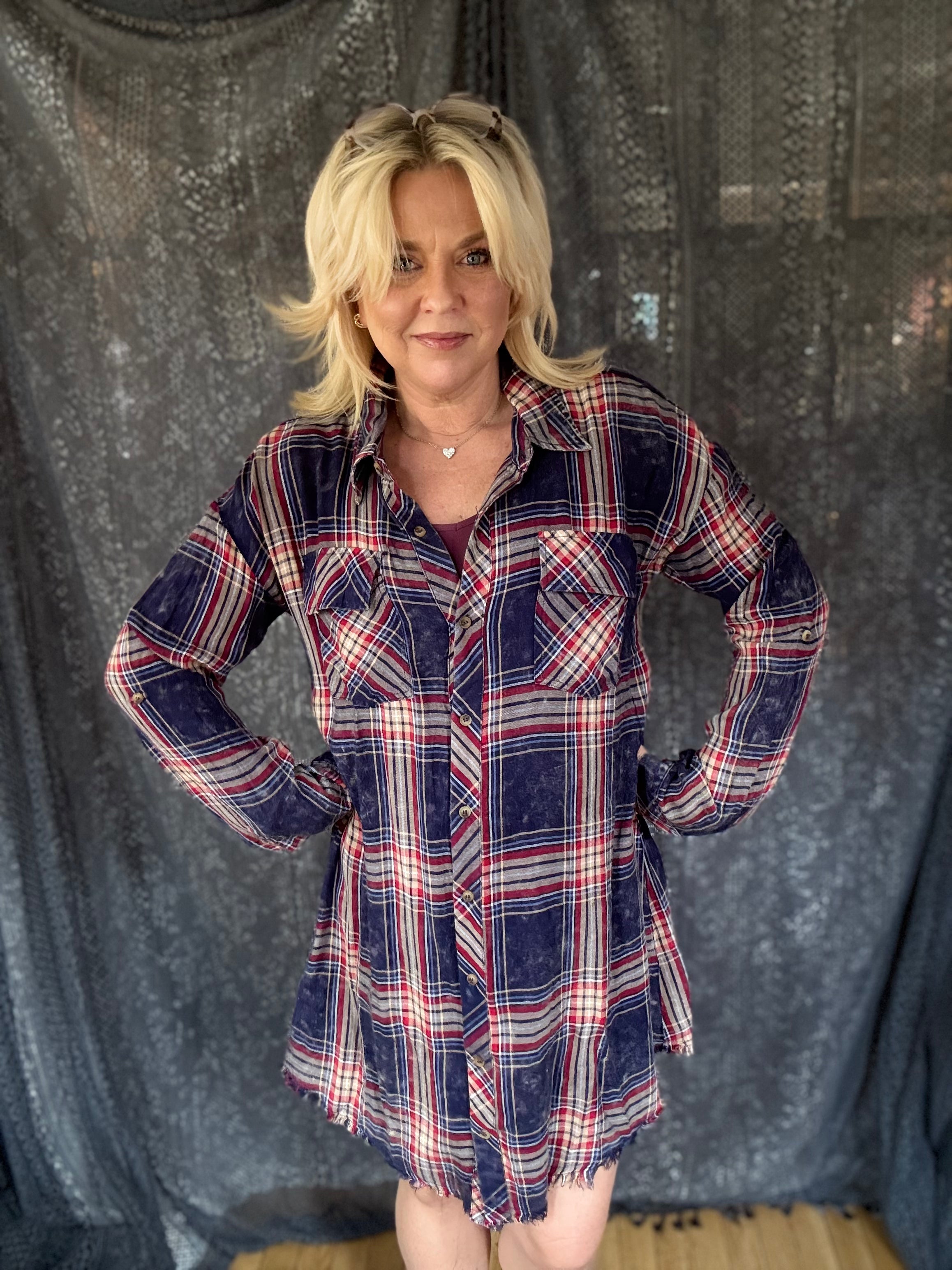 Kady Plaid Button Down - Washed Navy